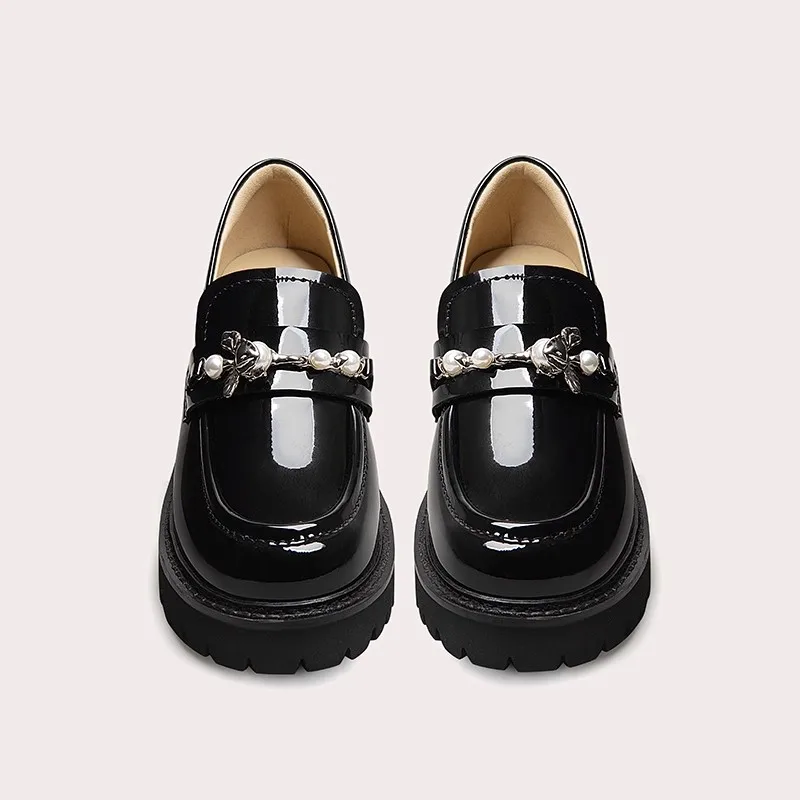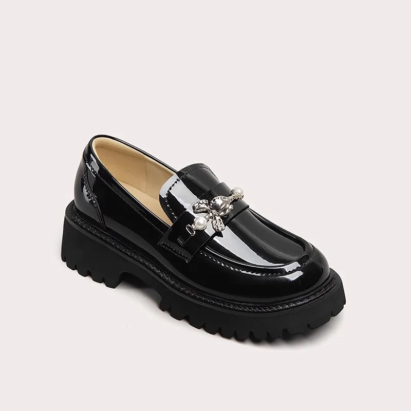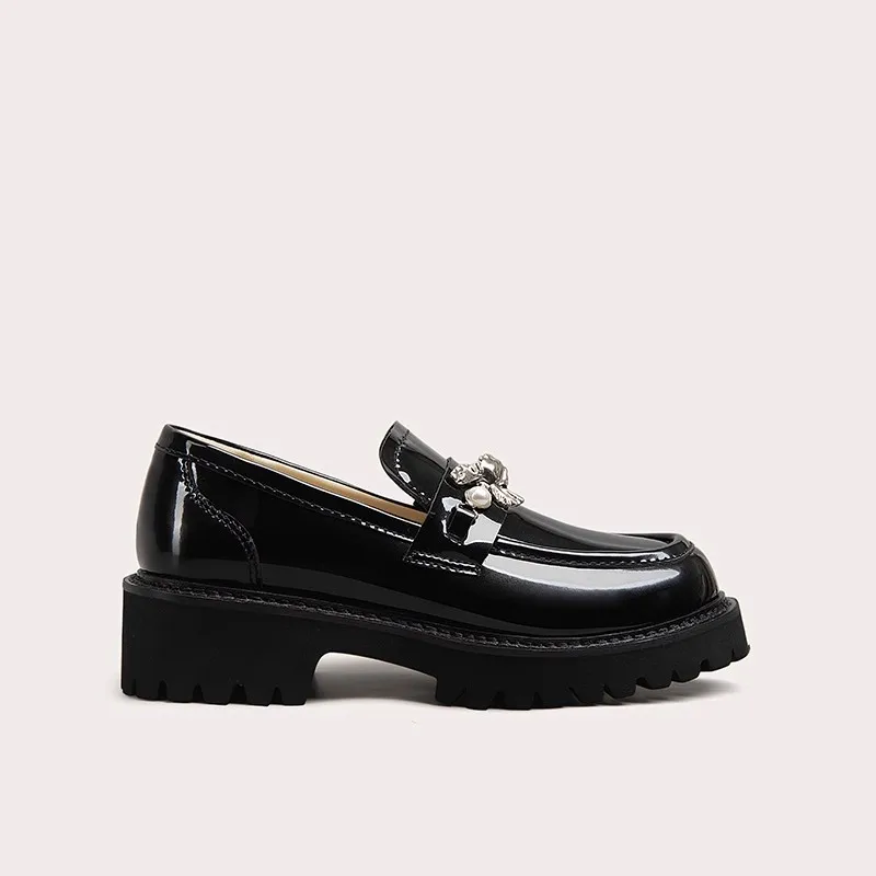 Lily Wei Mary Jane Garden Shoes Factory Price Loafers Women's Thick-Soled Soft British Style Genuine Black Thick-heeled